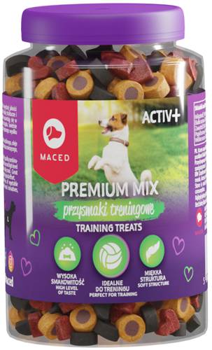 Maced Mieszanka Mięsna Premium 300 g to przysmak w postaci kosteczek o różnym kształcie dla psa małej rasy.