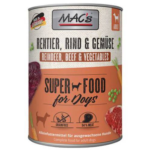 MAC's Adult to bezzbożowa mokra karma dla dorosłych psów, która ma pyszny smak i jest dobrze tolerowana. Do produkcji nie wykorzystuje się mączki sojowej ani zwierzęcej. Zawartość mięsa sięga do 70%, co dobrze wpisuje się w odpowiednią dla gatunku dietę z dużą ilością białka zwierzęcego.