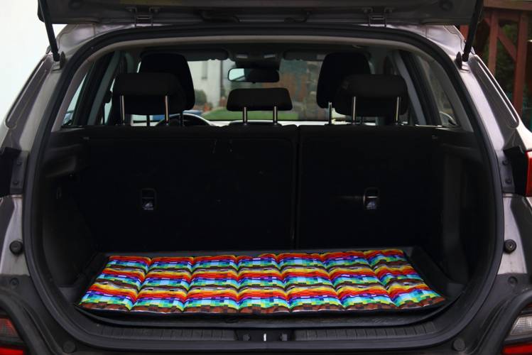 - Możliwość prania w pralce, w 30 stopniach. - Nie przyjmuje sierści - Materiał wodoodporny - Posiada sznureczki do montażu i zawiązywania - Wszyta miękka rączka idealna do przenoszenia