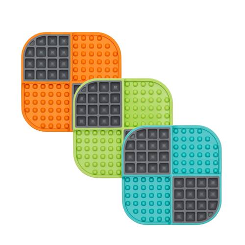 LickiMat® SLOMO posiada wyjątkowy design - 4 strefy i pozwala łączyć przekąski suche i mokre. Zabawa będzie bardziej interesująca!