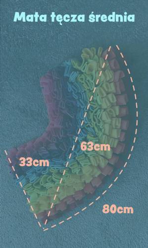 Mata jest wykonywana ręcznie, kolory mogą nieco odbiegać od tych na zdjęciu, ich układ zależy od dostępności 🙂 ale zawsze tęcza i zawsze pięknie