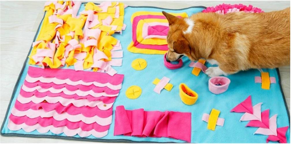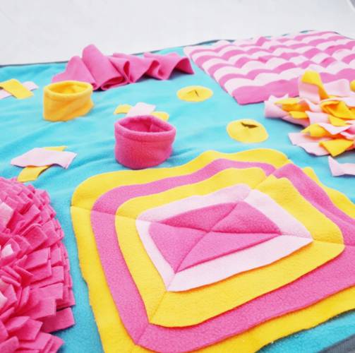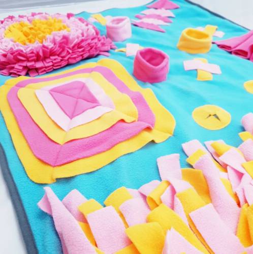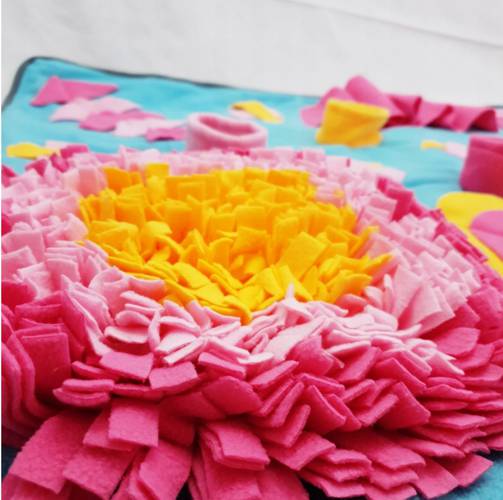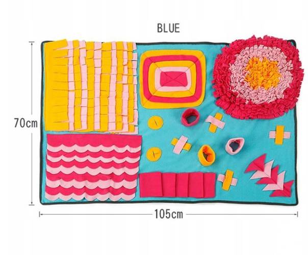 Kolorowa, oryginalna mata węchowo-edukacyjna dla Twojego psa lub kota. Posiada mnóstwo sekretnych schowków na pyszne smakołyki. Dodatkowo pozwala spowolnić jedzenie.