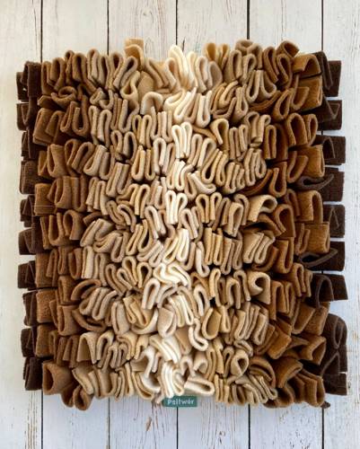 Opis Mata uszyta z grubego polaru. Podstawa z wodoodpornej kodury i usztywnienia. Od spodu posiada antypoślizgowe kropeczki. Nic nie wypada dołem, można też zwinąć i zabrać w podróż. Dodatkowa opcja wszycia gumek od spodu do zrolowania maty. Maty węchowe pozytywnie wpływają na zwierzęta, uspokajaj…