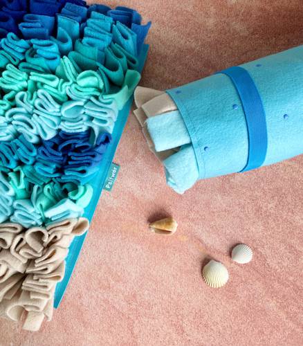 Opis Mata uszyta z grubego polaru. Podstawa z wodoodpornej kodury i usztywnienia. Od spodu posiada antypoślizgowe kropeczki. Nic nie wypada dołem, można też zwinąć i zabrać w podróż. Dodatkowa opcja wszycia gumek od spodu do zrolowania maty. Maty węchowe pozytywnie wpływają na zwierzęta, uspokajaj…