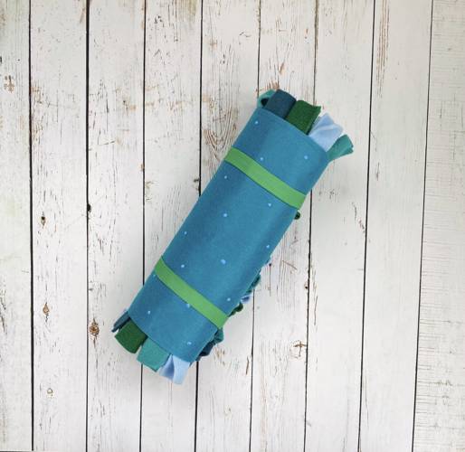 Nic nie wypada dołem, można też zwinąć i zabrać w podróż. Dodatkowa opcja wszycia gumek od spodu do zrolowania maty.