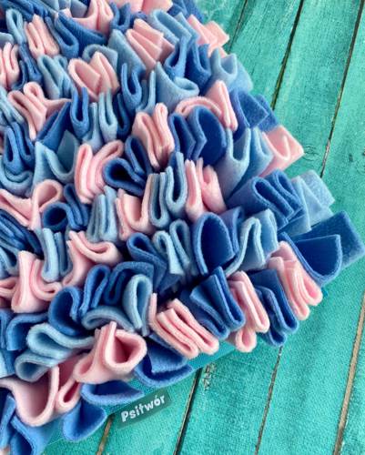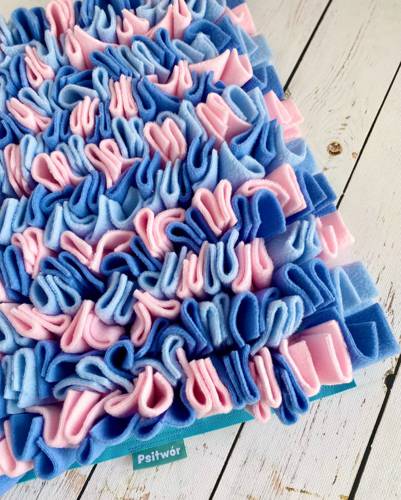 Opis Mata uszyta z grubego polaru. Podstawa z wodoodpornej kodury i usztywnienia. Od spodu posiada antypoślizgowe kropeczki. Nic nie wypada dołem, można też zwinąć i zabrać w podróż. Dodatkowa opcja wszycia gumek od spodu do zrolowania maty. Maty węchowe pozytywnie wpływają na zwierzęta, uspokajaj…