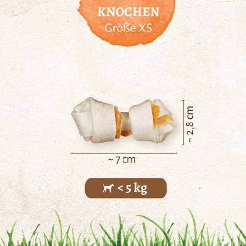 Przysmak kości do żucia z prawdziwym mięsem z kurczaka zawijanym w warstwach wołowej skóry, bezzapachowe, bez sztucznych barwników i wzmacniaczy smaku, różne rozmiary. Teraz w korzystnym pakiecie!
