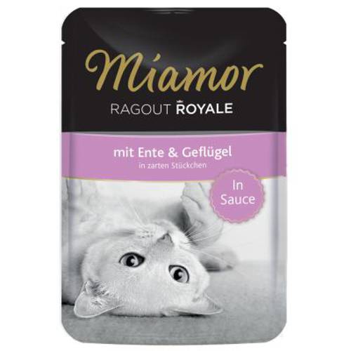 Miamor Ragout Royal to wykwintna karma o królewskim smaku. Wysoka zawartość mięsa drobiowego czyni karmę niezwykle smaczną. Drób lub ryby w połączeniu z wybranymi składnikami tworzą doskonałą kompozycję smakową. Karma Miamor Ragout Royale została dodatkowo wzbogacona delikatnym sosem uwielbianym przez koty. Proces delikatnego przyrządzenia karmy pozwala zachować naturalne wartości odżywcze i witaminy, by pokryć zapotrzebowania Twojego kota.Czyste i wygodne w użyciu saszetki Miamor Ragout Royale zawierają optymalną porcję karmy, dzięki czemu po otwarciu nie musisz przechowywać ich w lodówce.