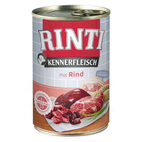 RINTI to zbilansowana karma mokra dla psów - koneserów. Zawiera wyłącznie czyste mięso. Jest dostosowana do potrzeb żywieniowych tego gatunku. Pies to z natury mięsożerca, jego przewód pokarmowy jest więc przystosowany do trawienia mięsa. Pierwotne pożywienie, upolowana zwierzyna, zawierała nie tylko mięso, ale również wnętrzności np. wątrobę, żołądek czy płuca.Pies jest typowym mięsożerca, dlatego nie potrzebuje zbóż czy węglowodanów, jako źródła energii. Zawarte w mięsie tłuszcze i białka zaopatrują go w potrzebne kalorie.
