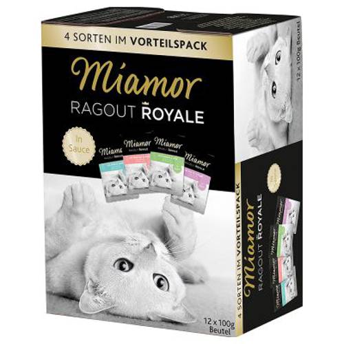 Miamor Ragout Royale to wyjątkowo smaczna karma z wysoką zawartością mięsa lub ryby w delikatnej galarecie lub smacznym sosie. Karma jest przyrządzana w procesie nieeliminującym witamin, więc wszystkie składniki odżywcze zostają zachowane. Dodatkowo karma nie zawiera barwników ani konserwantów. Miamor zapewnia kotu wszystko, czego Twój pupil potrzebuje. Poza tym Miamor Royale jest w bardzo wygodnym opakowaniu, dzięki czemu karma pozostaje dłużej świeża. Miamor Ragout Royal to królewski przysmak - wypróbuj przepyszną karmę Miamor w praktycznym opakowaniu! Zadbaj o różnorodność w kociej misce i pozbaw nudy codzienne posiłki!Pakiet próbny Miamor Ragout Royale, 24 x 100 g w skrócie: