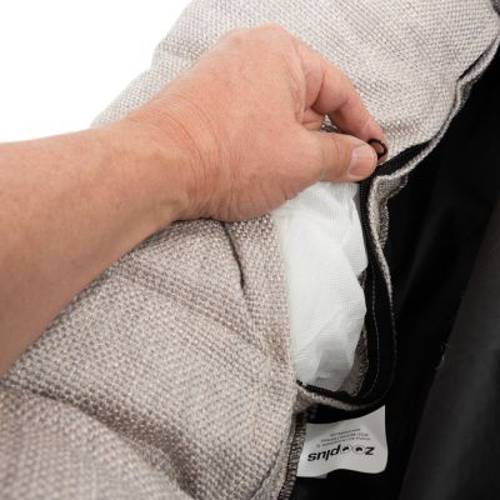 - Wyjmowalne obicie brzegu: przy użyciu ukrytego wewnątrz legowiska zamka błyskawicznego.