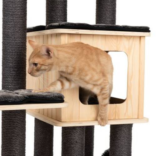 - Długie, wytrzymałe słupki do drapania: obite ciemnoszarym sizalem, idealne do ostrzenia pazurów oraz przyjemnego rozciągania i przeciągania się.