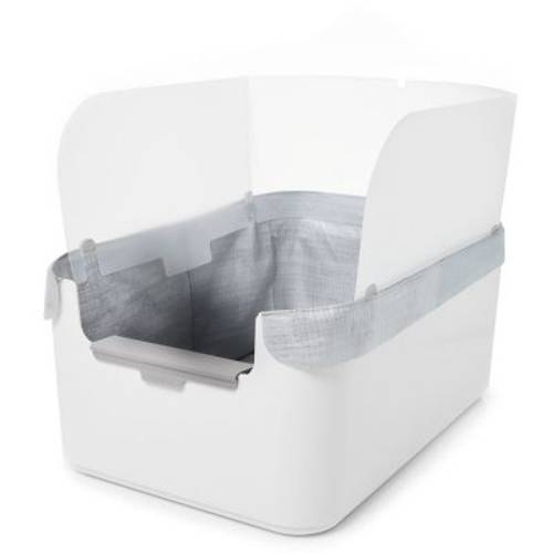 Wysoka, otwarta kuweta dla kotów, z platformą, nakładka wielokrotnego użytku chroni przed rozpryskami, zapewnia czystość, nowoczesny design, kolor biały/szary