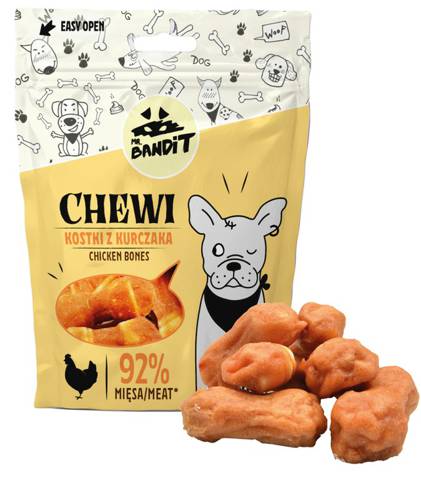Mr. Bandit Chewi kostki z kurczaka to niezwykle smakowity kąsek który potrafi zająć psiemu łobuziakowi dłuższą chwilę. Aromatyczna skóra wołowa owinięta delikatnym mięsem z piersi kurczaka to połącznie idealne!