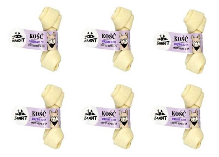 6x Mr. Bandit Kość wiązana 10cm Kości Mr. Bandit to gryzaki dla psich łobuzów lubiących wyzwania. Są gwarancją smakowitej i długiej rozrywki dla dużego i małego psa. Ulubione kształty codziennych przekąsek dla psów. Zaspokajają u psa naturalną chęć gryzienia, wzmacniają zęby i dziąsła. Pomagają utr…