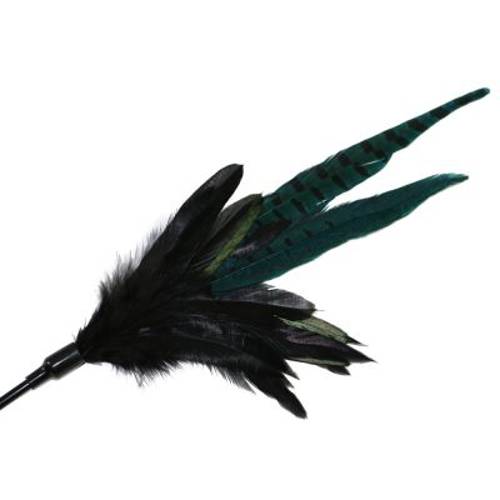Wędka dla kota z długimi naturalnymi piórami w ciemnych kolorach, elastyczny kijek z tworzywa sztucznego, wytrzymałe materiały, solidne wykonanie, doskonała dla dużych kotów, dł. 75 cm