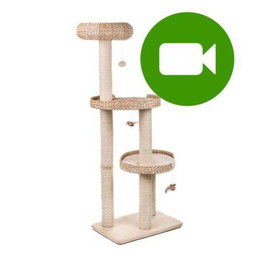 Nowoczesny drapak ze wspaniałymi łózkami z hiacynta wodnego i podstawą z naturalnego drewna. Kolor: beżowy