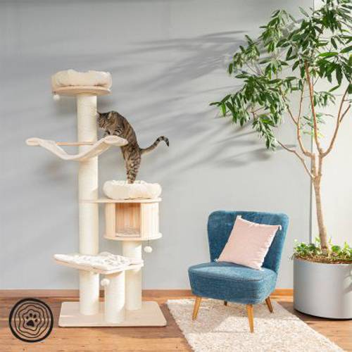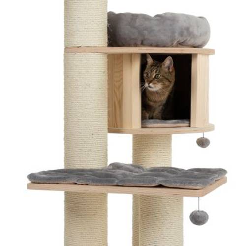 Stabilny drapak z wyjątkowo grubymi słupkami, budka obita drewnianymi listwami, solidna sklejka brzozowa, materiały z certyfikatem Oeko-Tex®, idealny dla ciężkich kotów. Wys.: 175 cm.Natural Paradise jest najlepszym dowodem szacunku właściciela dla tego, kim jesteś: znacznie więcej niż tylko zwierz…
