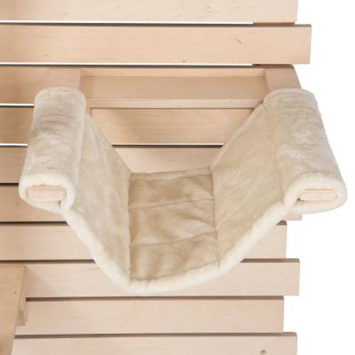 Lekko wyściełany i stebnowany hamak jest ulubionym miejscem dla kotów. Obicie można wyjąć z solidnej drewnianej ramy i uprać w pralce w temperaturze 30 °C, podobnie jak legowisko.