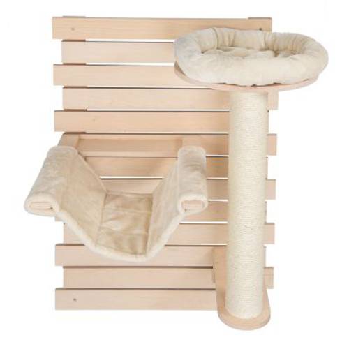 Ścienny drapak dla kota, z drewna brzozowego, możliwość wyboru miejsca komponentów na panelach, hamak i platforma widokowa z legowiskiem, długi sizalowy słupek, obicie Oeko-Tex®, wys.: 110 cm