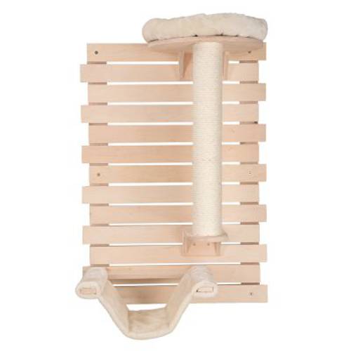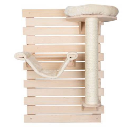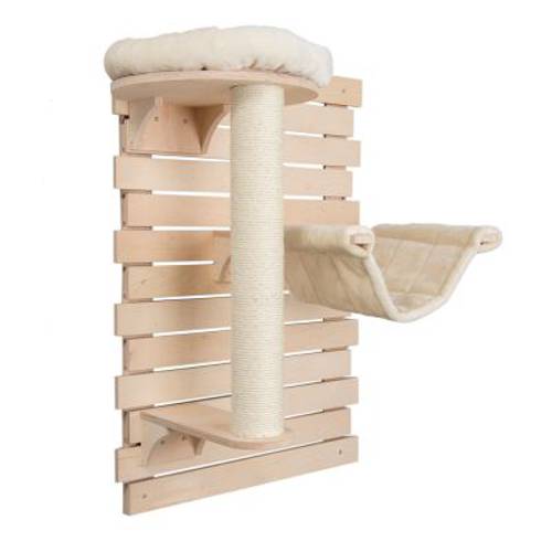 Ścienny drapak dla kota, z drewna brzozowego, możliwość wyboru miejsca komponentów na panelach, hamak i platforma widokowa z legowiskiem, długi sizalowy słupek, obicie Oeko-Tex®, wys.: 110 cm