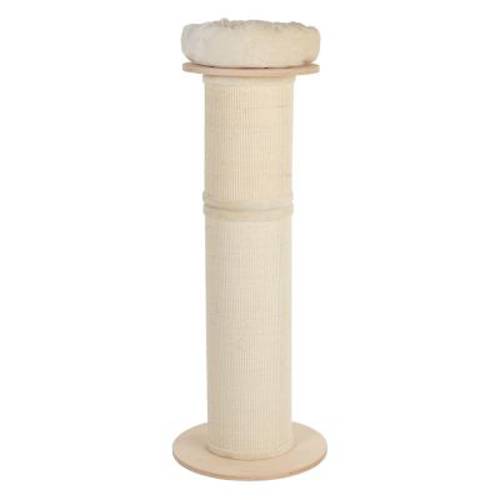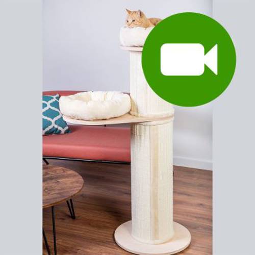 Bardzo gruby słupek do drapania: kolumny o średnicy 27 cm, pokryty naturalnym sizalem, płyty pod legowiska z prawdziwego drewna, 2 zdejmowane legowiska (można prać), mocowanie ścienne, 138 x 50 cm