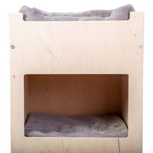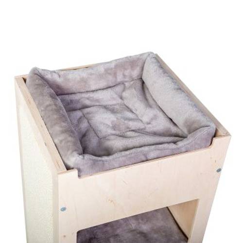 Co to jest? Może nowa szafa? Nie, wygląda bardziej jak fantazyjny drapak. Spójrz, są tutaj dwie budki, w których możesz się rozgościć. Poduszki wyglądają naprawdę wygodnie. I Twoi dwunożni przyjaciele mogą je dla Ciebie wyprać! Na samym szczycie drapaka znajduje się milutko wyściełana platforma widokowa. Stamtąd masz zawsze wszystko na widoku - idealnie!