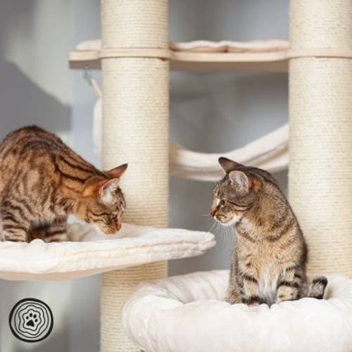 7 różnych legowisk zapewnia urozmaicenie. Również dla domów z wieloma kotami ten drapak z 2 przytulnymi hamakami, 2 miękkimi legowiskami z krawędzią i wyściełanymi platformami zapewnia dość miejsca do drzemania, relaksu i snów.