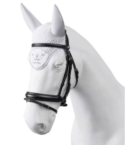Niepowtarzalne, wykonane ręcznie z delikatnej włóczki bawełnianej, ozdobionej miękką, pluszową tkaniną oraz lekko metalicznym sznurem w odcieniu jasnej szarości. Ozdobione haftem z motywem kaszubskim i kryształami Swarovskiego®. Całości dopełniają elastyczne uszy.