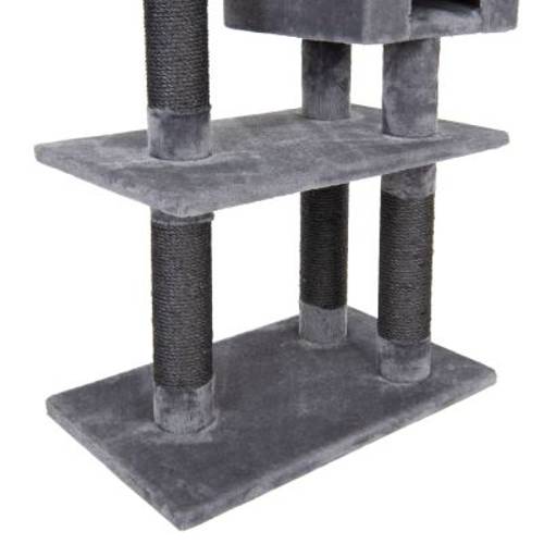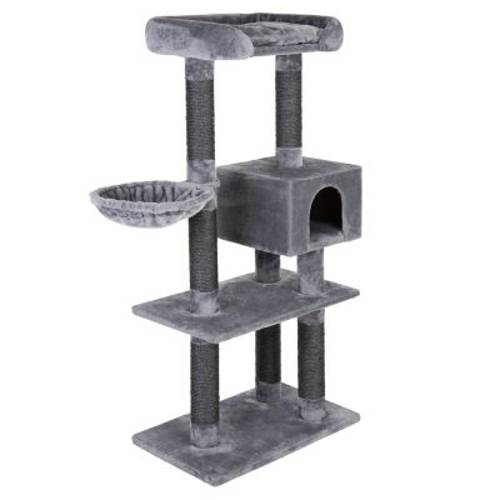 Stabilny drapak w szlachetnym odcieniu szarości, także dla kotów dużych ras, 3 wyściełane miejsca do leżenia i 1 platforma, 1 duże legowisko, domek, obrotowy hamak, 95 x 42 x maks. 135 cm