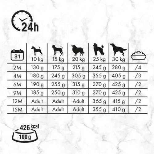 - Sucha karma dla szczeniąt i młodych psów średnich ras (10-30 kg wagi dorosłego psa).