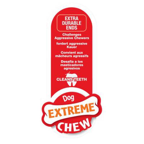 Produkt nie jest przeznaczony do spożycia. Ważne, aby dobrać wielkość i rodzaj zabawki odpowiednio do wieku, wagi i siły żucia psa. Kości do żucia, które nie są przeznaczone do spożycia powinny być wystarczająco duże, aby mogły być żute od boku, nie od góry i dołu. W przypadku posiadania większej liczby psów dobierz kość dla największego i najsilniejszego z nich. Kości dla ząbkujących szczeniąt oraz kości do średniego żucia nie nadają się dla silnych psów. Szczególnie silne psy powinny korzystać z kości Nylabone przeznaczonych do wyjątkowo mocnego żucia. Jeśli uważasz, że Twój pies połknął część zabawki skontaktuj się z weterynarzem.