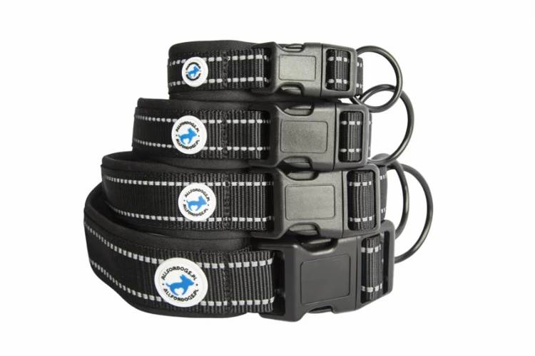 Obroża Dla Psa Black - Allfordogs - delikatna i wygodna – obszyta mięciutką pianką neoprenową pianką, wytrzymała i solidna, dzięki nylonowej tasiemce i solidnym zapięciom. Doskonała widoczność w ciemności, dzięki przeszyciu odblaskowym materiałem. Łatwa w utrzymaniu w czystości, szybkoschnącą.