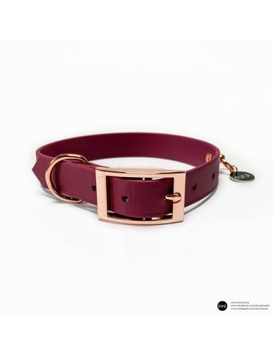 Obroża wykonana została z intensywnego bordowego Biothane®. Kolor dostojności i elegancji. Do wykończenia obroży zostały użyte okucia w barwach różowozłotych. Obroża z Biothanu® jest bardzo wytrzymała i odporna na warunki atmosferyczne. Łatwa w utrzymaniu w czystości, wystarczy przetrzeć mokrą ściereczką. W takiej obroży Twój pies będzie mógł swobodnie pływać, bawić się w błocie czy piasku.