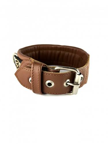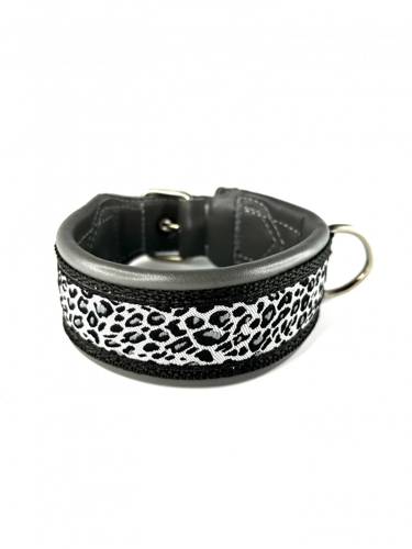 Obroża wykonana została z delikatnej i miękkiej skóry bydlęcej, dzięki czemu akcesoria nie wycierają sierści i nie powodują kołtunienia. Górna warstwa to ozdobna, najwyższej jakości taśma żakardowa.
