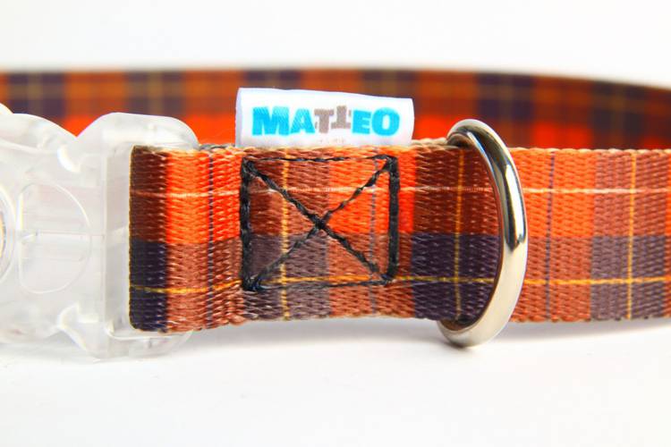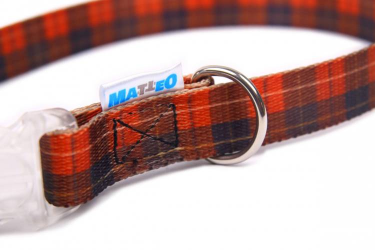 Obroża o kraciastym wzorze utworzonym z krzyżujących się różnej szerokości i barwy pasów, przebiegających w takim samym porządku zarówno wzdłuż osnowy, jak i wątku. To ponadczasowy wzór, który będzie doskonałym wyborem!