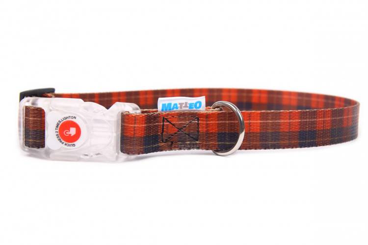 Obroża Klamra LED - Szkocka Krata 0546S 20MM 40CM 20-35CM