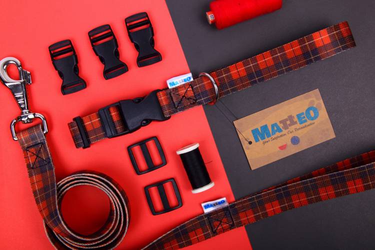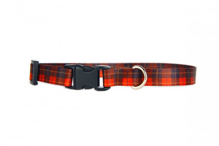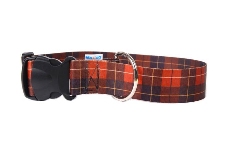 Obroża o kraciastym wzorze utworzonym z krzyżujących się różnej szerokości i barwy pasów, przebiegających w takim samym porządku zarówno wzdłuż osnowy, jak i wątku. To ponadczasowy wzór, który będzie doskonałym wyborem!