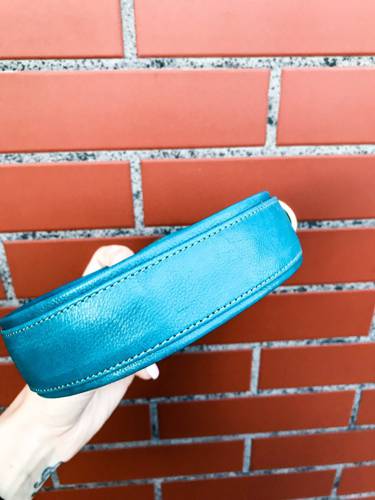 Obroża wykonana została z miękkiej skóry bydlęcej, dzięki czemu akcesoria nie wycierają sierści i nie powodują kołtunienia.