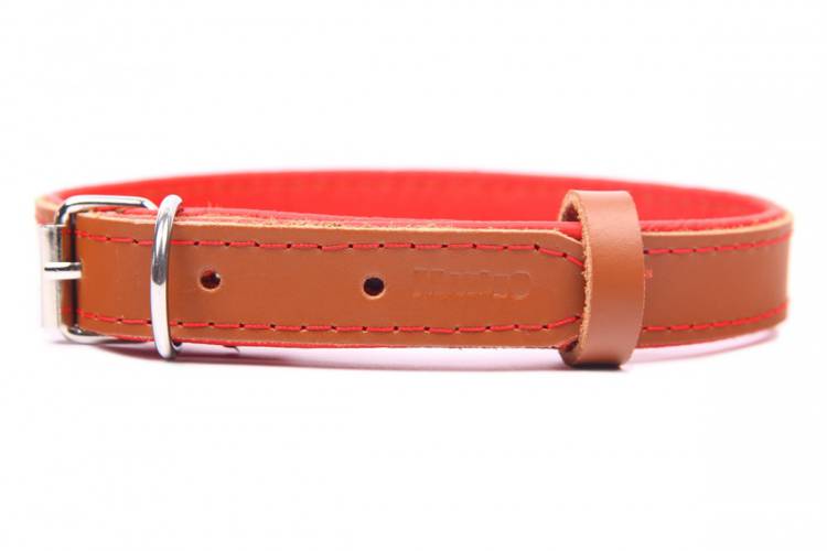 Obroża skóra Premium Brązowy-Czerwony 1182 14MM 31CM 23-28CM