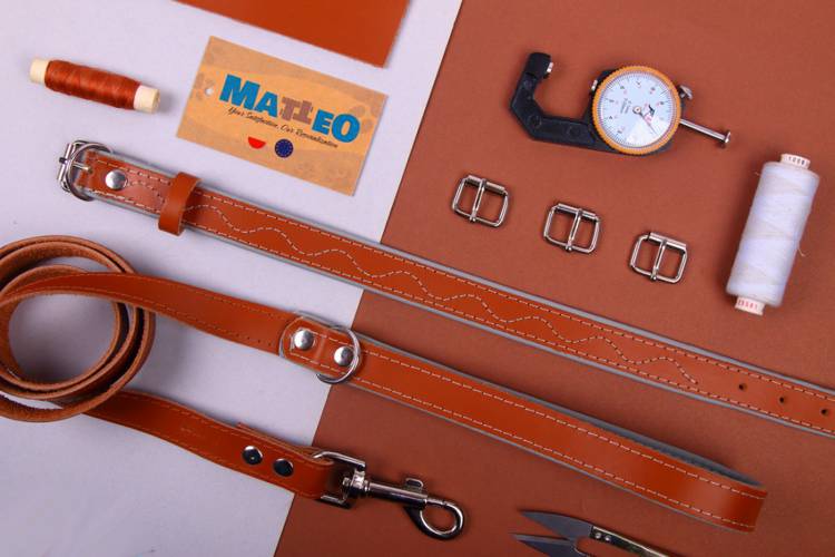 Obroża skóra Premium Fala – Brąz-Szary