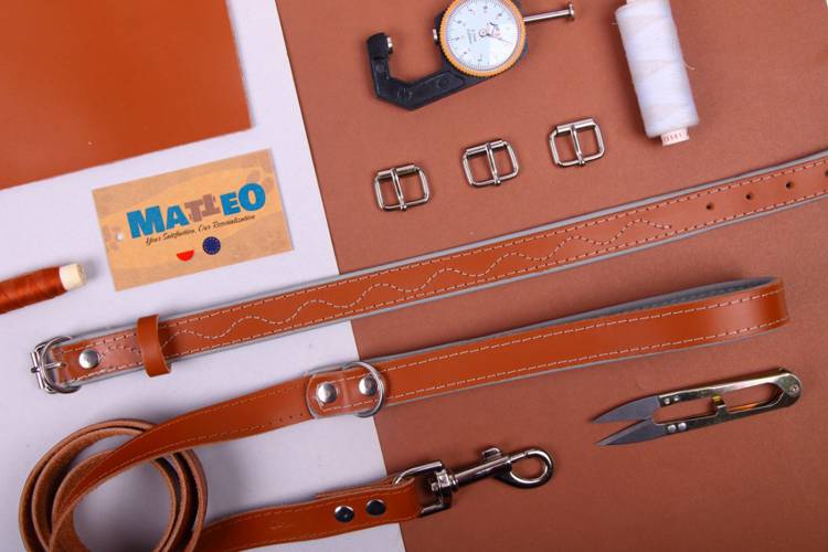 Kup Obroża skóra Premium Fala – Brąz-Szary 1384 24MM 50CM 35-46CM