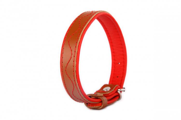 Kup Obroża skóra Premium Fala – Brąz/Czerwony 1392 30MM 56CM 38-51CM