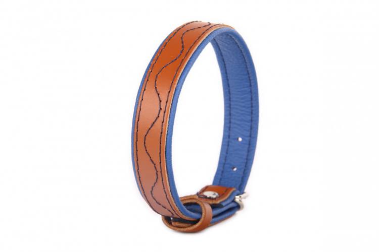 Obroża skóra Premium Fala – Brąz/Niebieski 1363 20MM 40CM 28-36CM