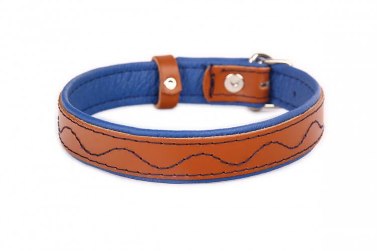 Obroża skóra Premium Fala – Brąz/Niebieski 1373 20MM 44CM 33-41CM