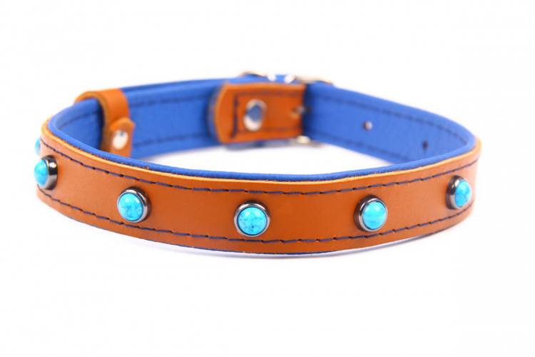 Obroża skóra Premium Kryształ - Brąz/Niebieski 1313 20MM 40CM 28-36CM