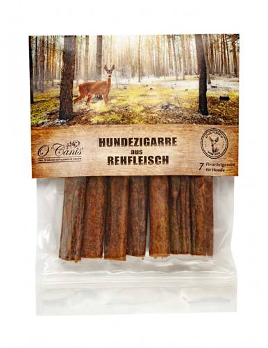 Przysmak cygaro O'Canis wykonane ze 100% mięsa mięśniowego. Do przygotowania przekąski używane są tylko wybrane mięsa, uformowane w ciemne cygara a następnie poddane powolnemu i delikatnemu suszeniu.