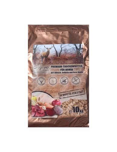 Karma pieczona O'canis z jelenia, karma dla psów z alergiami pokarmowymi. Przeznaczona jest dla ras średnich i dużych oraz wymagających. Zawiera 65% mięsa z jelenia z dodatkiem selerem i czerwonego buraka. Mięso jelenia charakteryzuje się niską zawartością tłuszczu, natomiast wysoką zawartością peł…