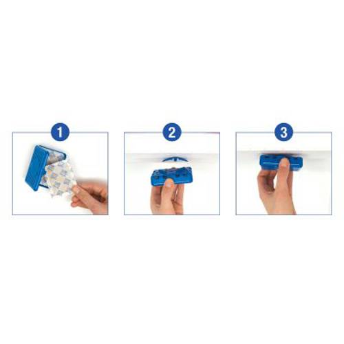 - Łatwy w użyciu: wymienne wkłady odświeżające, wkładane do specjalnego zamykanego pojemniczka, który z łatwością można przymocować u szczytu kuwety