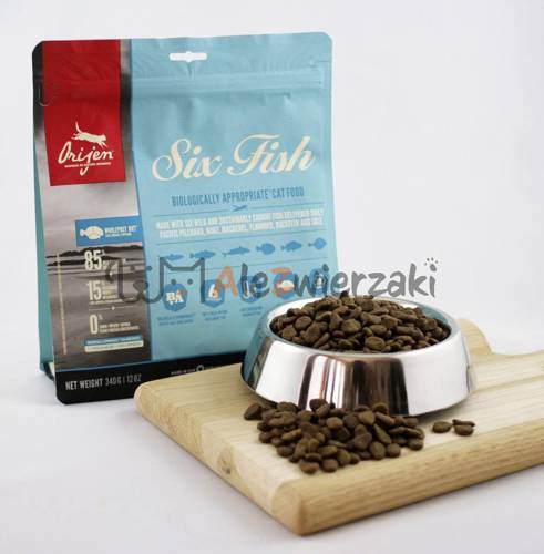 Orijen Six Fish Cat 340g Jedzenie ORIJEN SIX FISH cechuje niezrównana zawartość ryb poławianych metodą zrównoważonego połowu w krystalicznych wodach Północnego Pacyfiku. Dostarczane są w całości, świeże i pełne wartości odżywczych. Nagradzany ORIJEN jest z dumą przygotowywany w naszych kuchniach No…